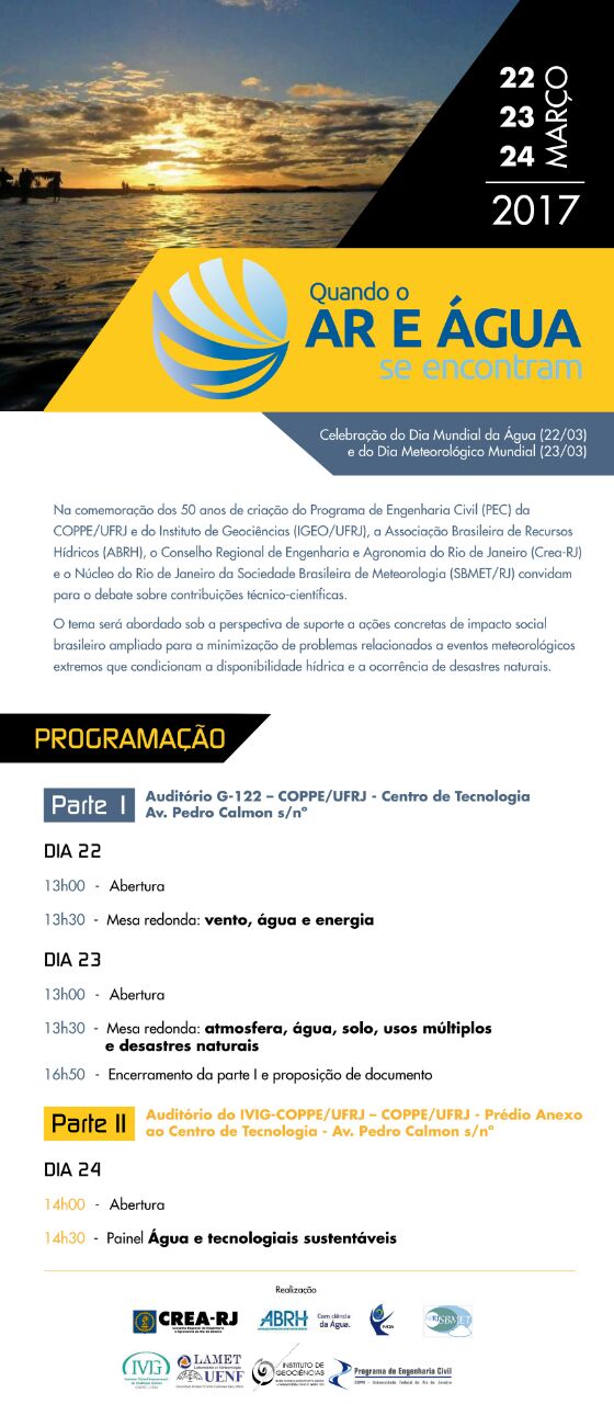 Na celebração do Dia Mundial da Água (22/03) e do Dia Meteorológico Mundial (23/03) e na comemoração dos 50 anos de criação do Programa de Engenharia Civil (PEC) da COPPE/UFRJ e do Instituto de Geociências (IGEO/UFRJ),